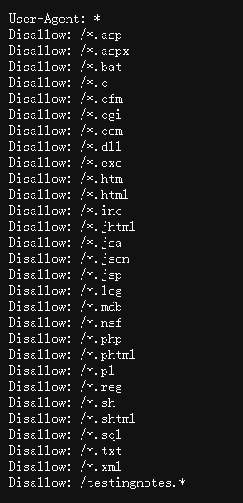 有一个和其他不一样的东西 Disallow: /testingnotes.* 根据名称盲猜后缀是 txt ,访问一下试试,给了一些提示